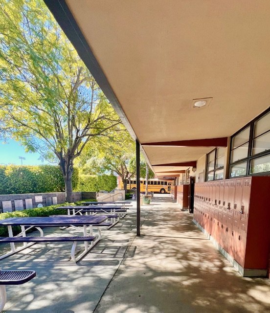 Bus | Cafeteria | Classroom 1 + Trophy Hallway | Classroom 2 + Outdoor Courtyard | Classroom 3 + Outdoor Courtyard | Classroom 4 | Colorful Classroom 5 + Hallway | Colorful Science Classroom 6 + Hallway | Courtyard | Green Lawn | Gymnasium | Theater